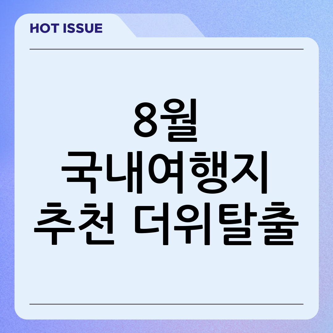 8월, 뜨거운 태양이 내리쬐는 여름의 절정입니다. 무더위를 피해 시원한 바다로 떠나거나, 푸르른 자연 속에서 힐링하는 여행은 상상만으로도 설레는 일입니다. 하지만 막상 여행을 계획하려 하면 어디로 가야 할지, 무엇을 해야 할지 막막할 때가 많습니다. 그래서 오늘은 여러분의 8월 여행 고민을 덜어드리고자, 특별한 추억을 만들 수 있는 국내 여행지들을 엄선하여 추천해 드립니다.