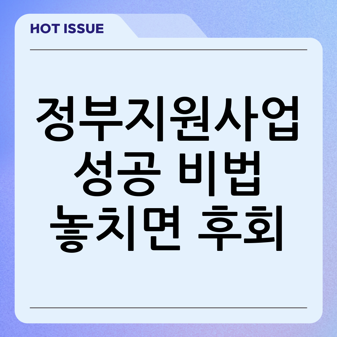 정부지원사업은 단순히 자금을 지원받는 것을 넘어, 사업의 경쟁력을 강화하고 지속 가능한 성장을 위한 든든한 파트너가 될 수 있습니다. 적극적으로 활용하여 사업의 꿈을 이루시기 바랍니다.