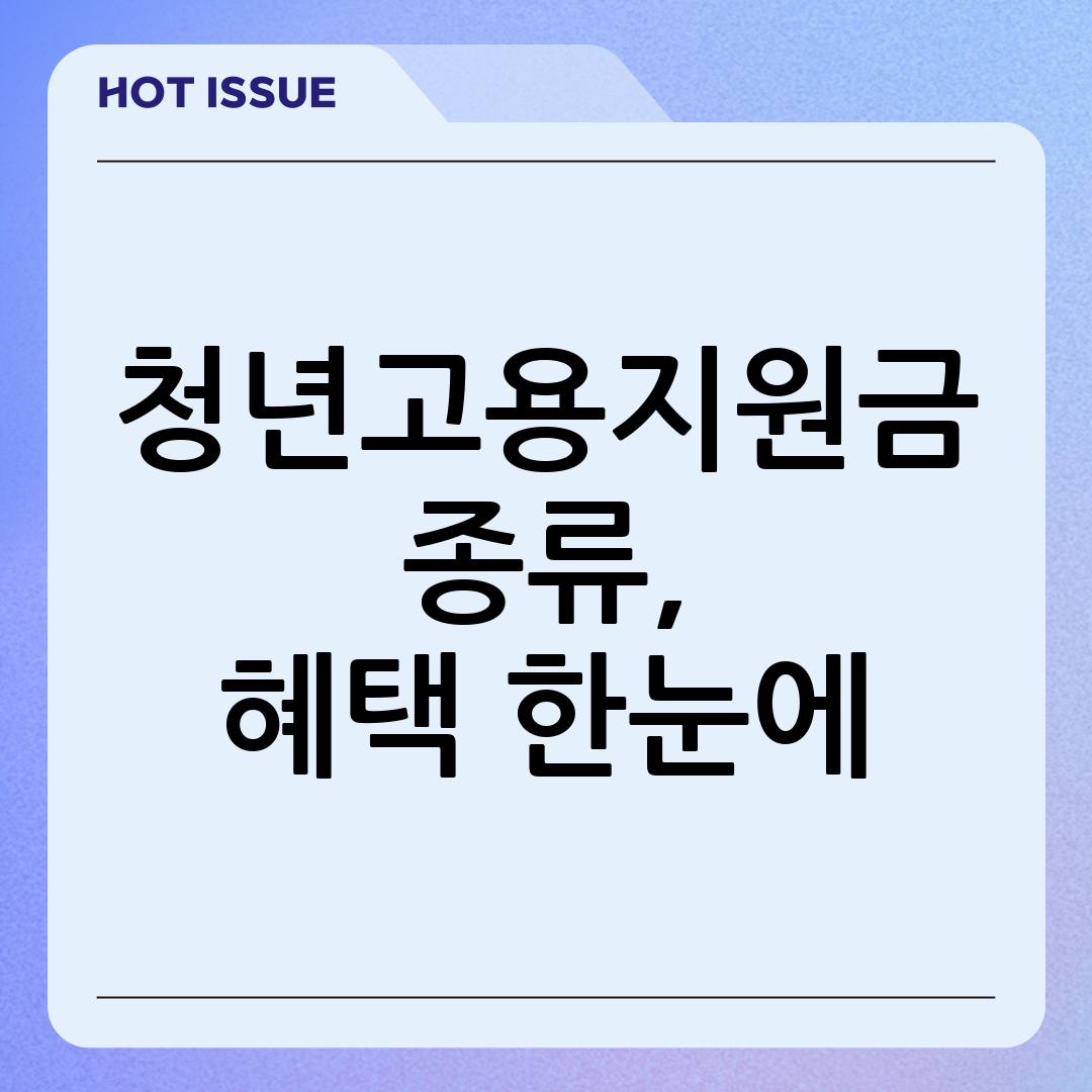 청년고용지원금은 지원 대상, 목적, 지원 방식 등에 따라 다양한 종류로 나뉩니다. 대표적인 청년고용지원금 종류는 다음과 같습니다.