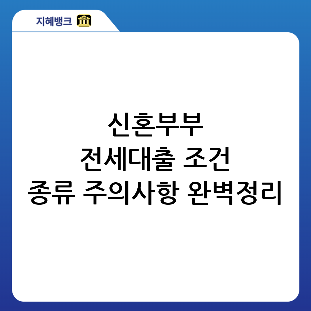 신혼부부 전세자금 대출은 신혼 생활의 시작을 돕는 중요한 제도입니다. 신혼부부 전세자금 대출을 통해 경제적 부담을 줄이고 안정적인 주거 환경을 마련하여 행복한 미래를 설계할 수 있습니다. 신혼부부 전세자금 대출은 다양한 종류가 있으므로, 자신의 상황에 맞는 상품을 선택하는 것이 중요합니다. 신혼부부 전세자금 대출을 준비할 때는 대출 조건, 필요 서류, 대출 한도 및 금리 등을 꼼꼼하게 확인해야 합니다. 신혼부부 전세자금 대출 이용 시 과도한 대출, 전세 사기, 대출 조건 변경 등에 주의해야 합니다.
